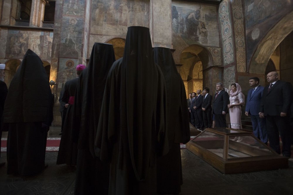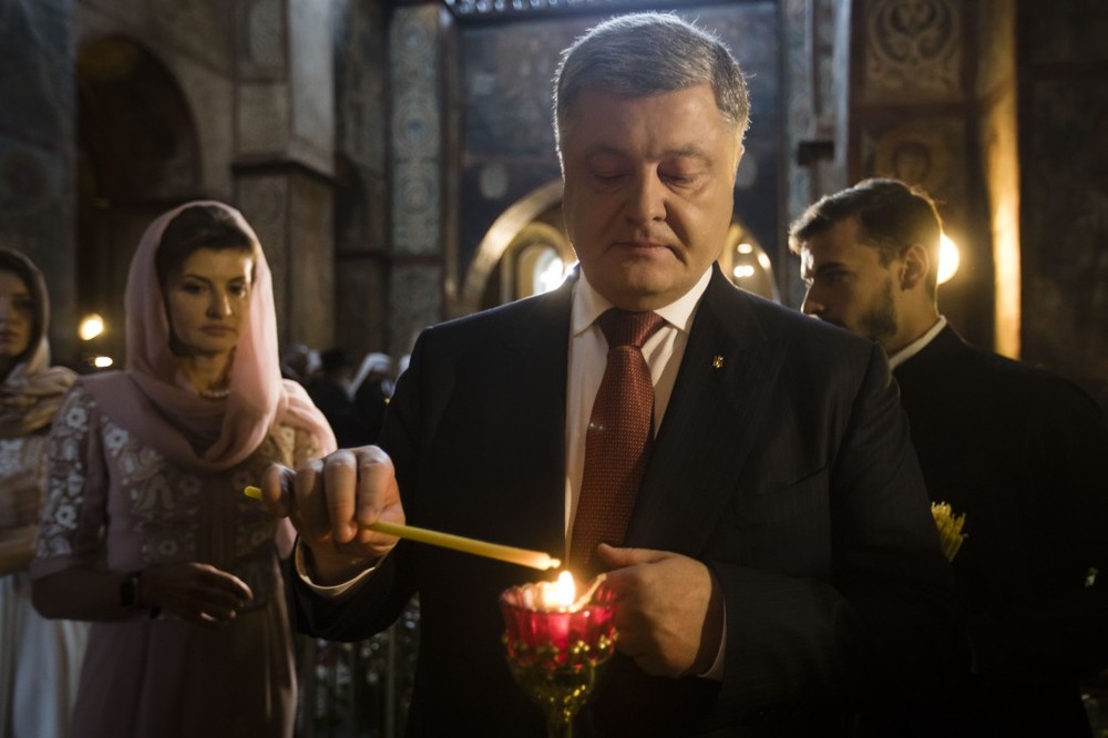 Так, Порошенко с женой и детьми с утра помолился за Украину в Софийском соборе.