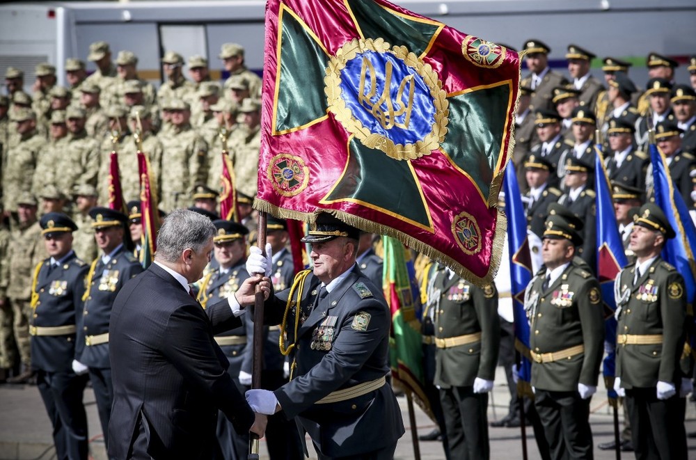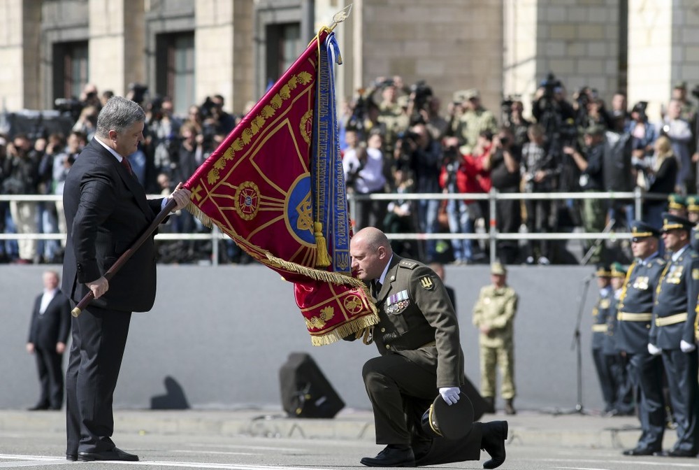 Президент Украины Петр Порошенко в ходе мероприятий, посвященных Дню Независимости, традиционно вручил боевые флаги и знамена.