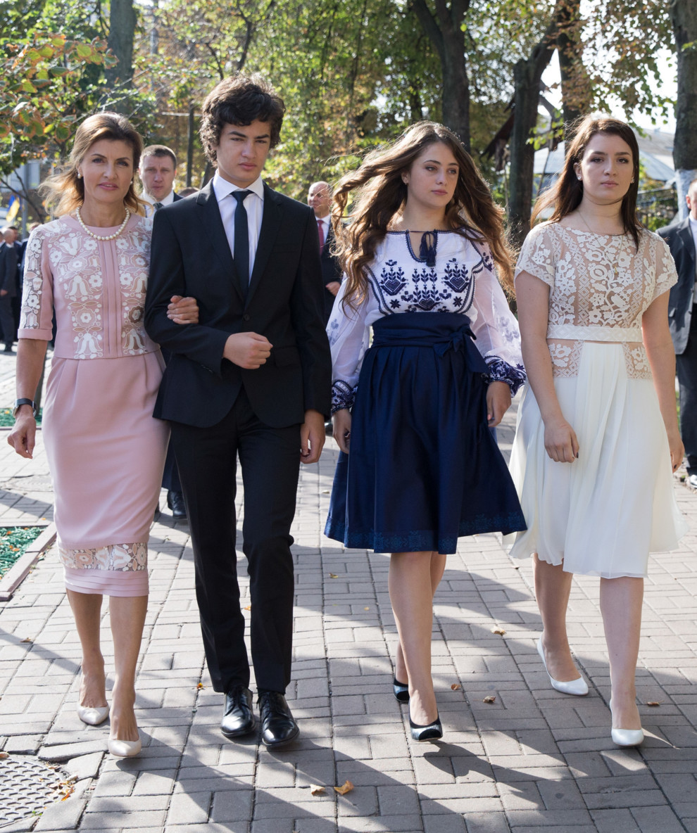 Журнал Vogue также поместил фото жены Петра Порошенко с детьми при входе в Софию Киевскую. Издание отмечает, что для торжеств, посвященных 26-й годовщине независимости Украины, Марина Порошенко вместе с дочерьми Александрой и Евгенией выбрали одежду от украинского бренда Oksana Polonets. В платье первой леди гармонично сочетаются старинные орнаменты с современными трендами.