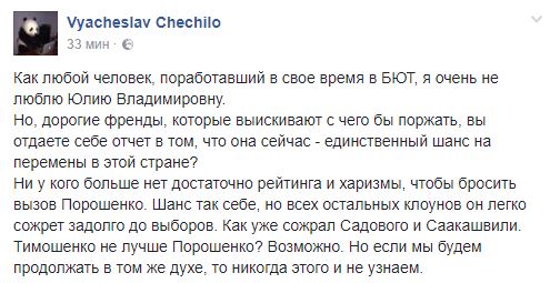 Журналист Вячеслав Чечило говорит, что ЮВТ - "единственный шанс", который может бросить вызов Петру Порошенко, а потому зря над ней смеются.