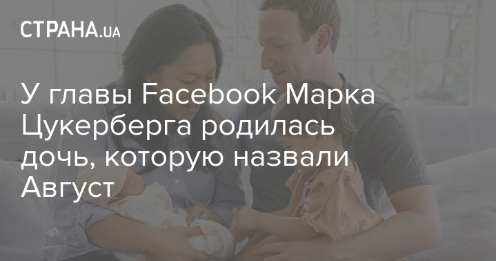 У главы Facebook Марка Цукерберга родилась дочь, которую назвали Август