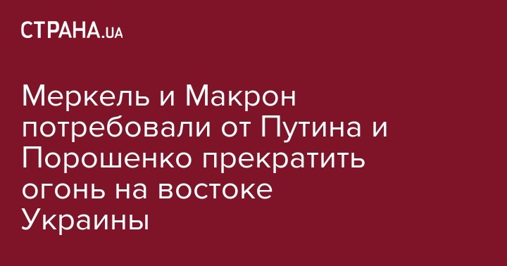 Канцлер Германии Ангела Меркель и президент Франции Эммануэль Макрон призвали президента Украины Петра Порошенко и президента России Владимира Путина выполнить взятые на себя обязательства по прекращению огня на востоке Украины, говорится в совместном заявлении канцлера Германии и президента Франции о ситуации на востоке Украины.