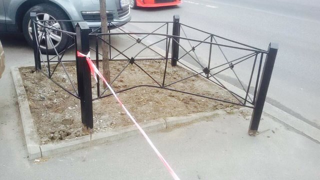 В Подольском районе Киева неизвестные на авто сломали забор вокруг высаженного зеленстроевцами дерева.