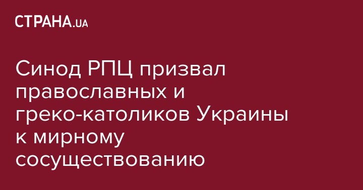Синод Русской православной церкви призывает каноническую православную и грекокатолическую церкви Украины к мирному сосуществованию. Об этом сообщается в постановлении, принятого по итогам заседания Синода в Санкт-Петербурге.