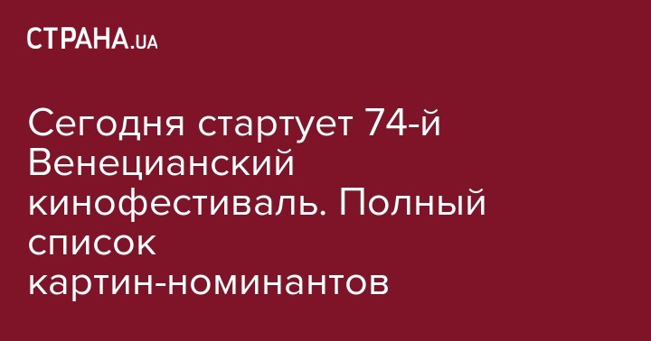 Сегодня, вечером, 30 августа, на острове Лидо в Венеции откроется 74-й Международный кинофестиваль