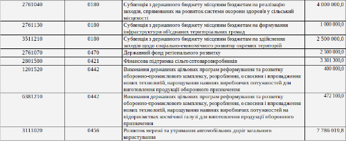 1. Строительство дорог - 7,7 млрд грн (распорядитель - Государственное агентство автомобильных дорог Украины, которое находится в управлении Министерства инфраструктуры).
