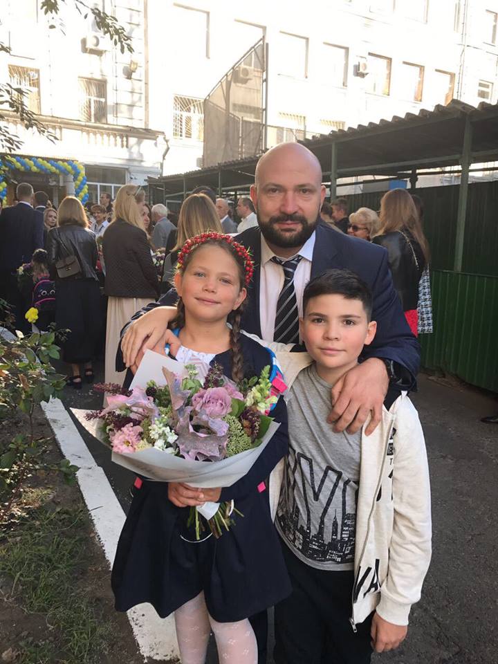 Замминистра строительства и ЖКХ Лев Парцхаладзе показал двоих детей, которых 1 сентября привел в школу на линейку.