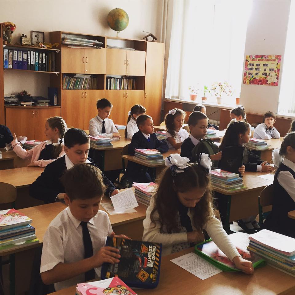 В Донбассе, контролируемом Украиной, линейки шли даже на линии фронта. В одной из школ Авдеевки наравне с украинским повесили флаг Евросоюза.