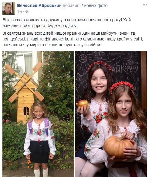 Заместитель Авакова генерал Вячеслав Аброськин показал своих дочерей - тоже в вышиванках. Отметим, что Аброськин родом из Донбасса, а Семенченко - из Севастополя.