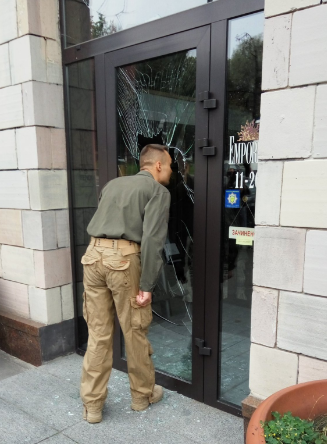 Бизнесмен также добавил, что подал встречное заявление в полицию и готов сотрудничать с правоохранительными органами. Кроме того, по словам Доценко, компания готова покрыть ущерб от разбитых витрин и испорченного офиса арендодателю помещения - Национальной Академии наук.