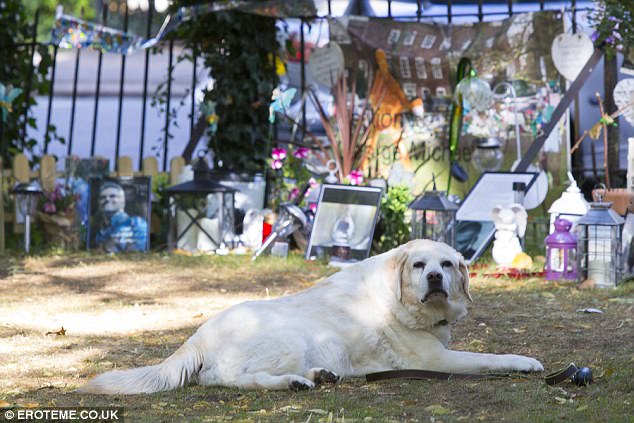 Золотистый лабрадор по кличке Эбби тоскует по своему хозяину и часто лежит там, где поклонники творчества Джорджа Майкла устроили народный мемориал.