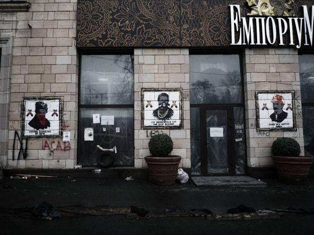 Главным скандалом воскресенья стал инцидент на улице Грушевского - кто-то стер рисунки времен последнего Майдана со стен мебельного салона "Эмпориум". Там находились граффити с портретами Тараса Шевченко, Леси Украинки и Ивана Франко - все три писателя были стилизованы под участников Евромайдана.