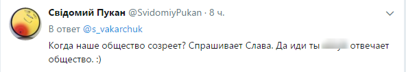 — Пішов ти на…уй, Славко, — отвечает общество".