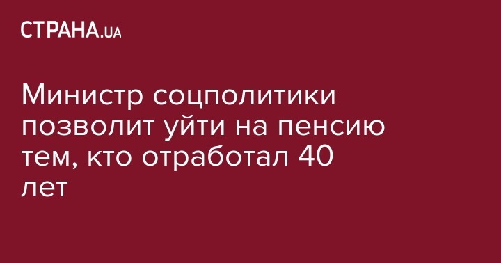 Министр соцполитики позволит уйти на пенсию тем, кто отработал 40 лет