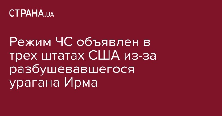 Президент США Дональд Трамп объявил о введении режима чрезвычайно ситуации (ЧС) в ассоциированном с США Пуэрто-Рико, в штате Флорида и на Виргинских островах. Об этом говорится в сообщении пресс-службы Белого дома, передает издание The Hill.