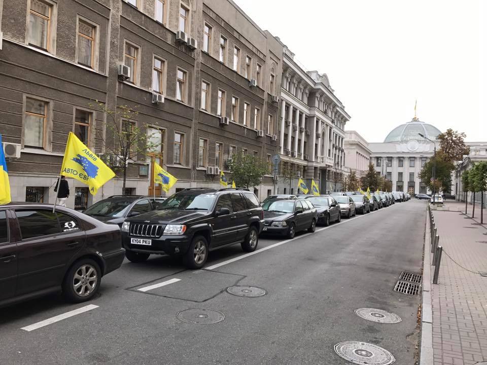 В среду, 6 сентября, с раннего утра правительственный квартал: квадрат улиц Грушевского, Шелковичной, Институтской в Киеве оказался заблокирован владельцами автомобилей на еврономерах.