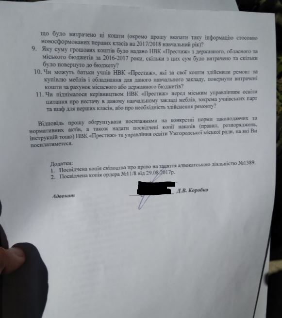 Кроме того, Дмитрий Коробко еще до родительского собрания написал адвокатский запрос в местное гороно.