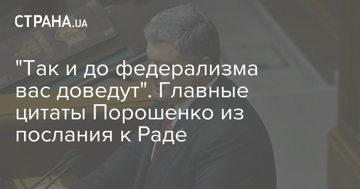 "Удивляют и возмущают действия отдельных политических сил, - заявил президент. - Например, в прошлом году ими были инициированы решения ряда областных советов по установлению "договорных отношений" в распределении полномочий между государством и соответствующими регионами. Вы чего? Как президент, правительство и Верховная Рада должны расценить такую инициативу? Непродуманность, недальновидность, ошибка? На чью мельницу вы пытаетесь лить воду? Я обращаюсь к депутатскому корпусу и местных советов - внимательно смотрите, за что вы голосуете. В какие авантюры вас иногда втягивают центральные партийные органы, ослепленные борьбой за властью. Так и до федерализма они вас доведут".