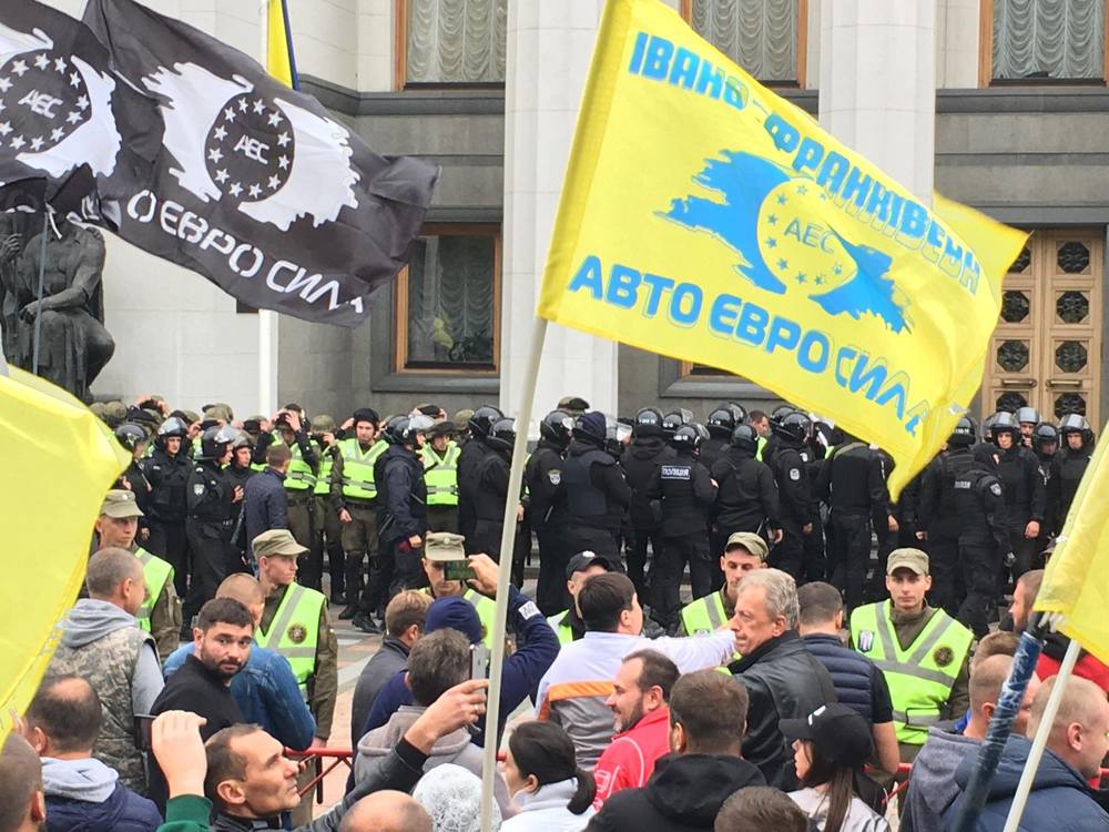 В четверг, 7 сентября, к 15:00 правоохранители силой оттеснили акцию протеста владельцев автомобилей на еврономерах от стен Верховной Рады. Об этом сообщает корреспондент "Страны" с места событий.