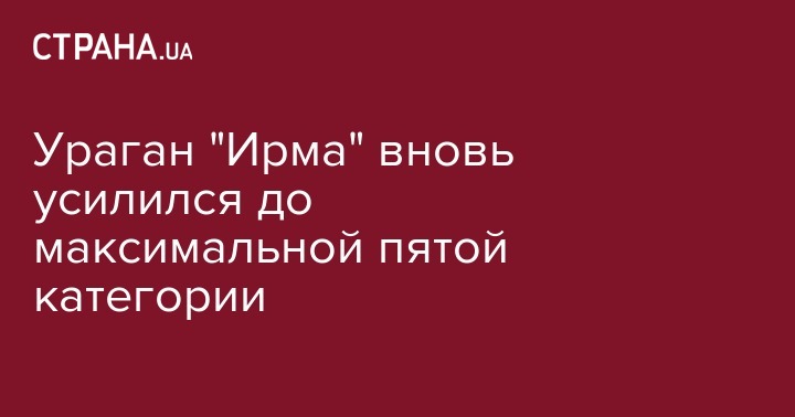 Ураган "Ирма" усилился до максимальной пятой категории. Об этом сообщает пресс-служба Национального центра предупреждения ураганов США.