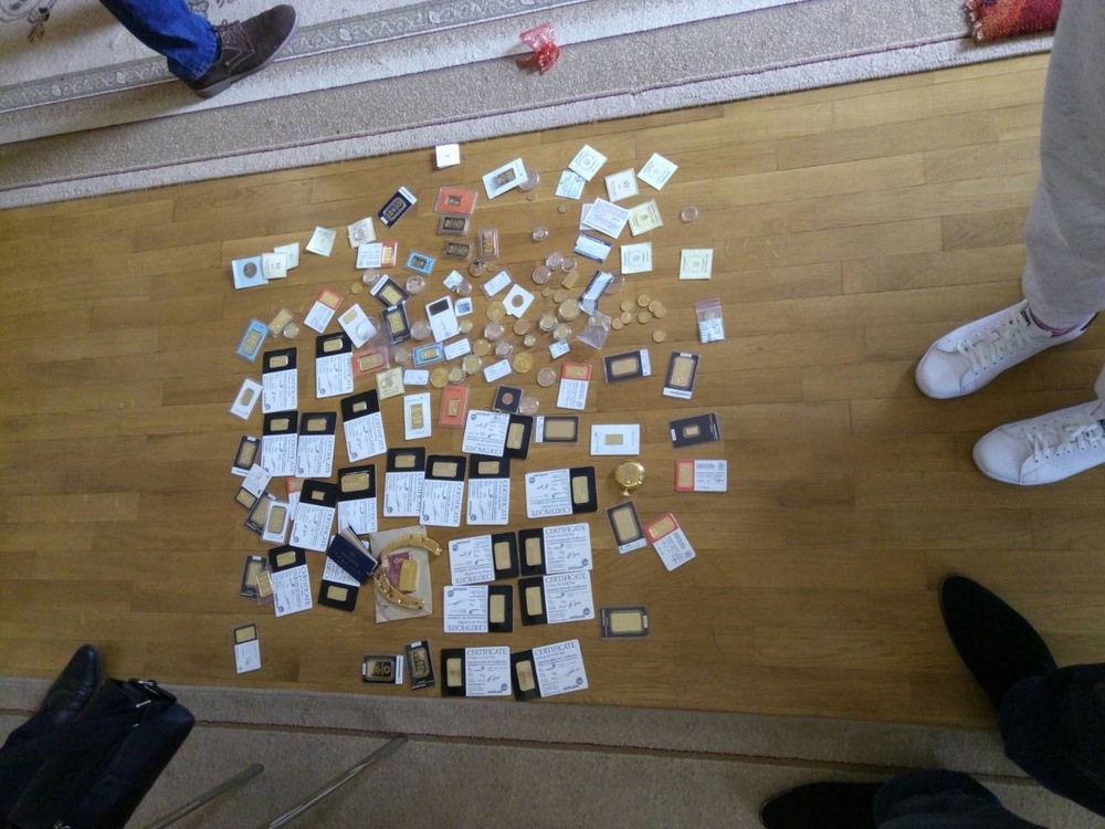 Как информирует пресс-служба, по результатам обысков по месту жительства одного из бывших высокопоставленных лиц обнаружены и изъяты денежные средства в сумме более 200 тыс. долларов США, 3 кг золота, драгоценные изделия, картины и иконы, и эти документы и черновые записи по Евромайдану.