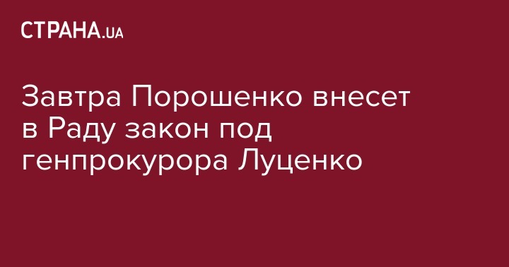 Завтра Порошенко внесет в Раду закон под генпрокурора Луценко