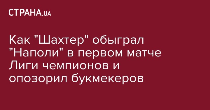 Как "Шахтер" обыграл "Наполи" в первом матче Лиги чемпионов и опозорил букмекеров