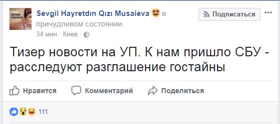 "К нам пришло СБУ - расследуют разглашение гостайны", - написала Мусаева.