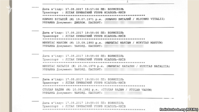 Также журналистам удалось получить информацию из базы данных о пересечении границы Украины по всем пассажирам этого чартера из Неаполя.