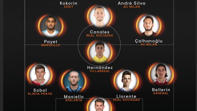 Полузащитники: Родриго Эрнандес ("Вильярреал"), Димитри Пайет ("Марсель"), Хакан Чалханоглу ("Милан"), Серхио Каналес ("Реал Сосьедад").