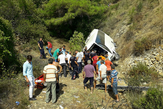 В Турции сорвался со скалы автобус с туристами