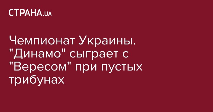 Чемпионат Украины. "Динамо" сыграет с "Вересом" при пустых трибунах