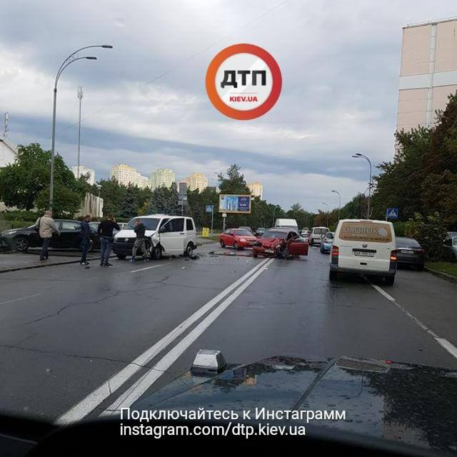 Сегодня в Днепровском районе Киеве случилось лобовое столкновение Shevrolet и Volkswagen. Об этом сообщает портал dtp.kiev.ua на Facebook-странице.