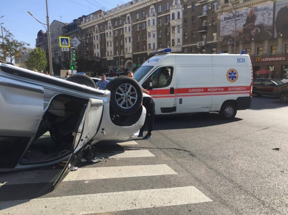 Напомним, ранее под Киевом после лобового ДТП легковушка "легла" на бок.