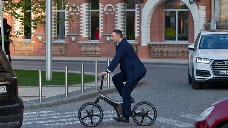 Мэр Киева Виталий Кличко не только ездит на работу на велосипеде, но и возвращается на нем домой.