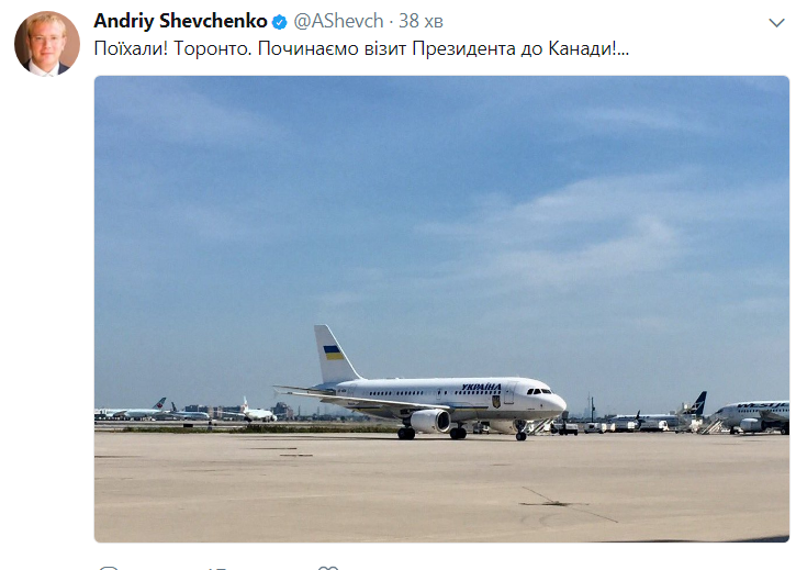 "Поехали! Торонто. Начинаем визит президента в Канаду!…", – написал в пятницу вечером украинский посол.