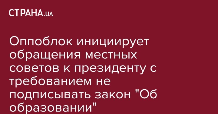 Партия "Оппозиционный блок" инициирует обращение местных советов к президенту Украины с требованием не подписывать закон "Об образовании".