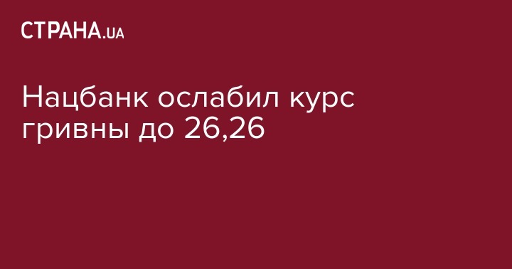 В понедельник, 25 сентября, Нацбанк установил официальный курс гривны на уровне 26,2616 грн за доллар, ослабив его на 2 копейки по сравнению с пятницей, когда он был на уровне 26,2372 грн. Об этом сообщается на сайте НБУ.
