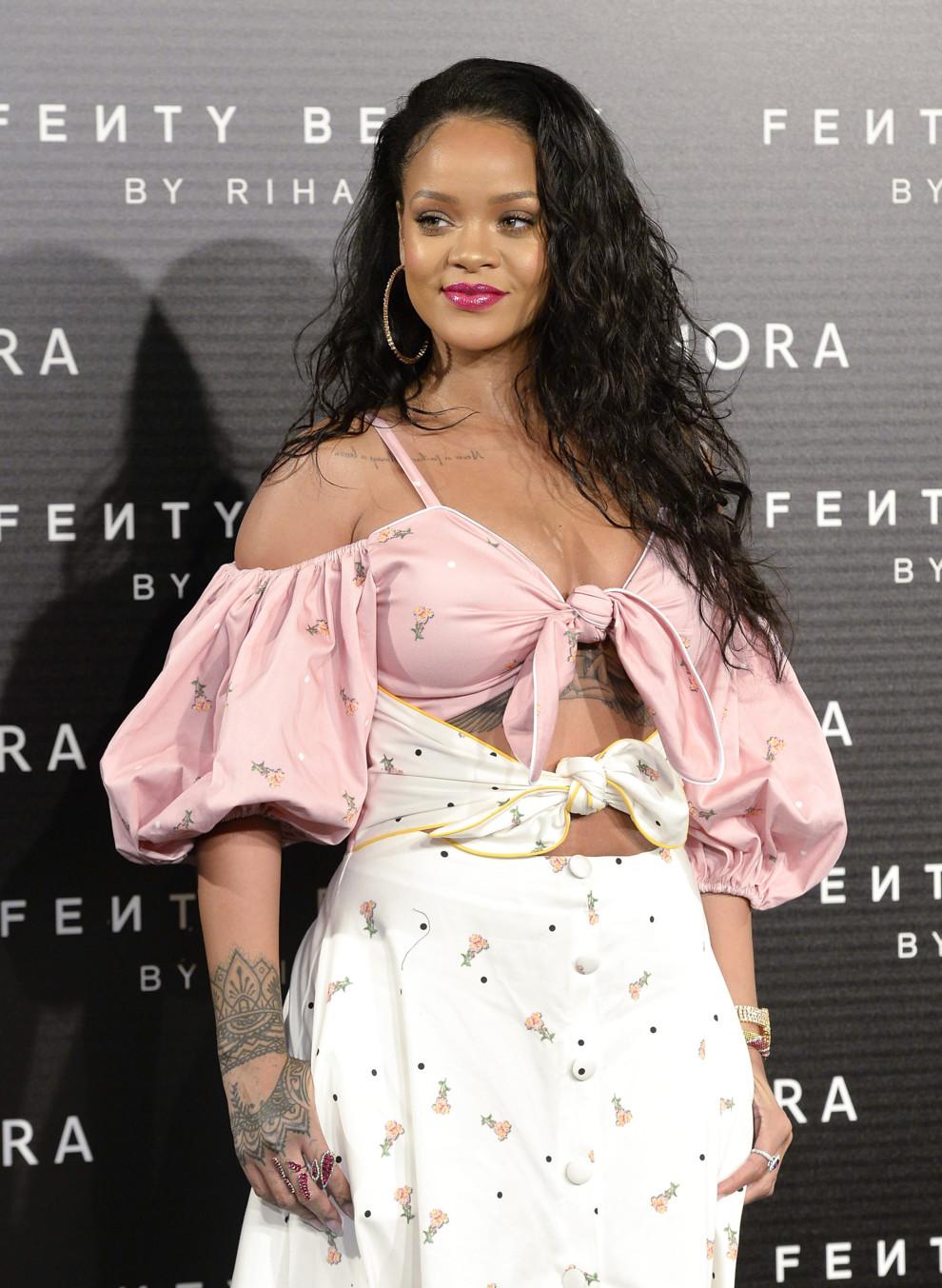 Смену в образе немного располневшая Ри продемонстрировала на презентации своей первой коллекции косметики Fenty Beauty.