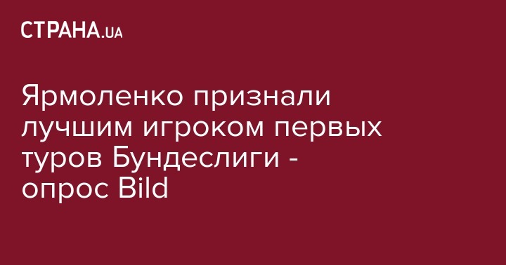 Украинский легионер дортмундской "Боруссии" Андрей Ярмоленко стал лучшим футболистом стартовых туров бундеслиги по итогам опроса немецкого таблоида Bild.