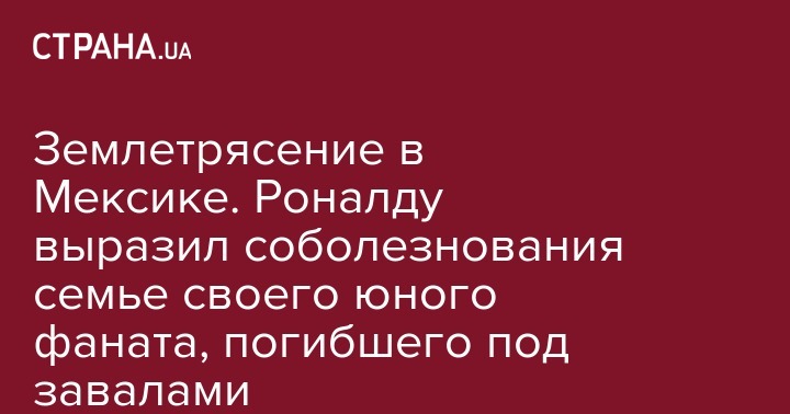 Землетрясение в Мексике. Роналду выразил соболезнования семье своего юного фаната, погибшего под завалами