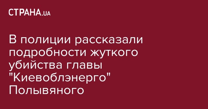 Председатель правления АО "Киевоблэнерго" Иван Полывяный, по данным предварительной судебно-медицинской экспертизы, был задушен неизвестными, которые ворвались в его дом.