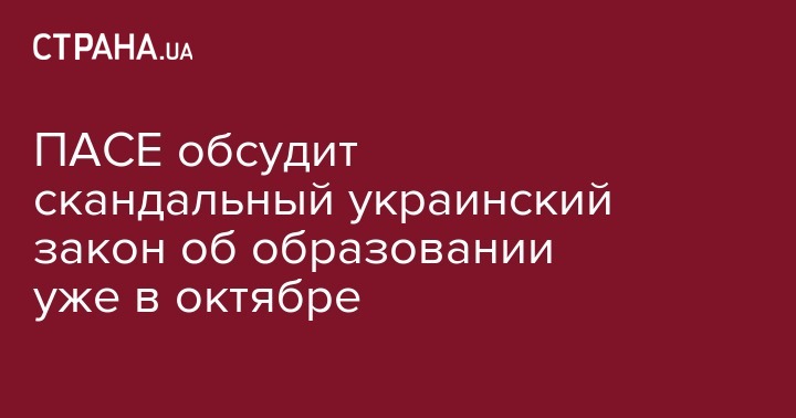 Парламентская ассамблея Совета Европы (ПАСЕ) получила запрос на проведение дебатов по закону "Об образовании" в ходе сессии, которая состоится 9-13 октября.