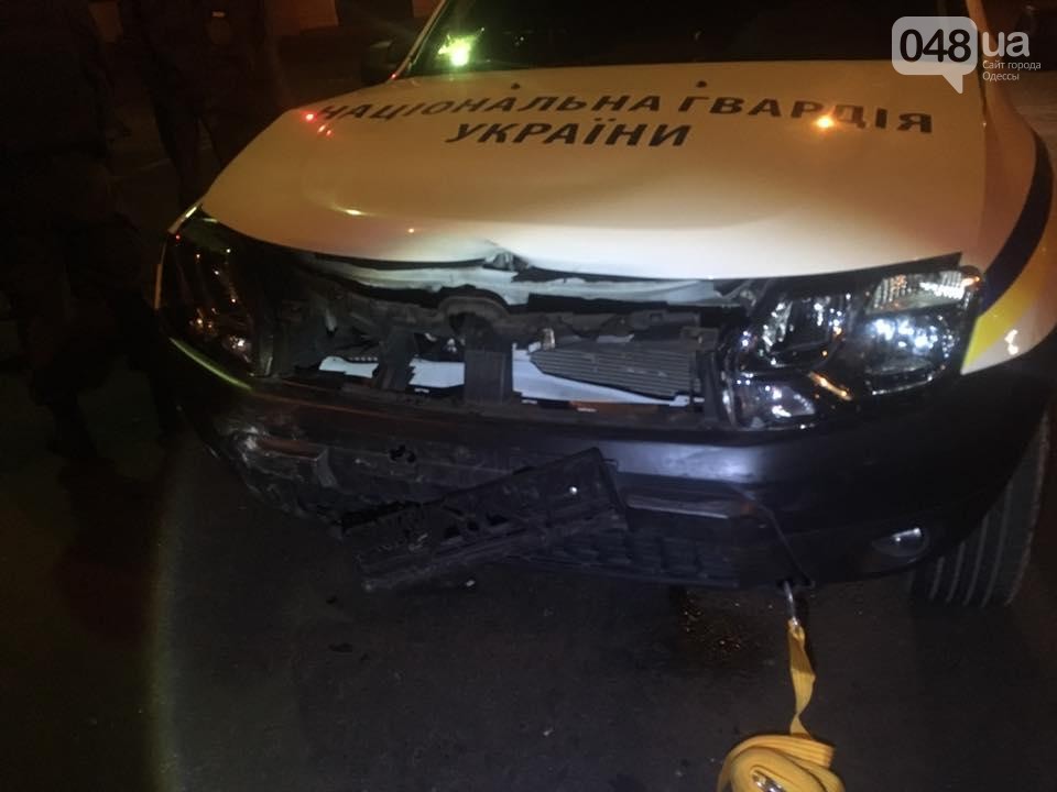 По данным местного издания 048.ua, которое ссылается на очевидцев, гвардейцы выезжали с второстепенной дороги и попытались пересечь двойную сплошную, где протаранили иномарку в бок.