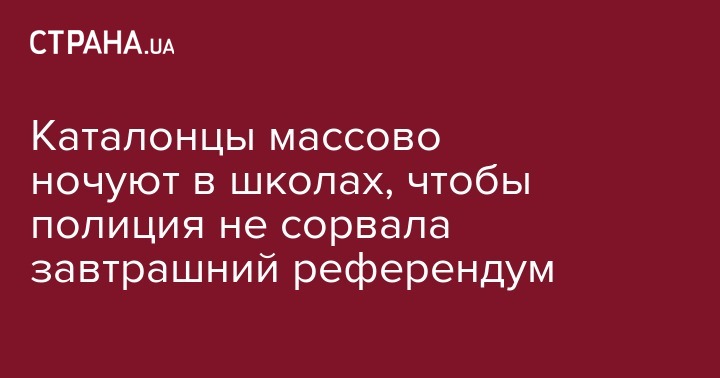 Каталонцы массово ночуют в школах, чтобы полиция не сорвала завтрашний референдум
