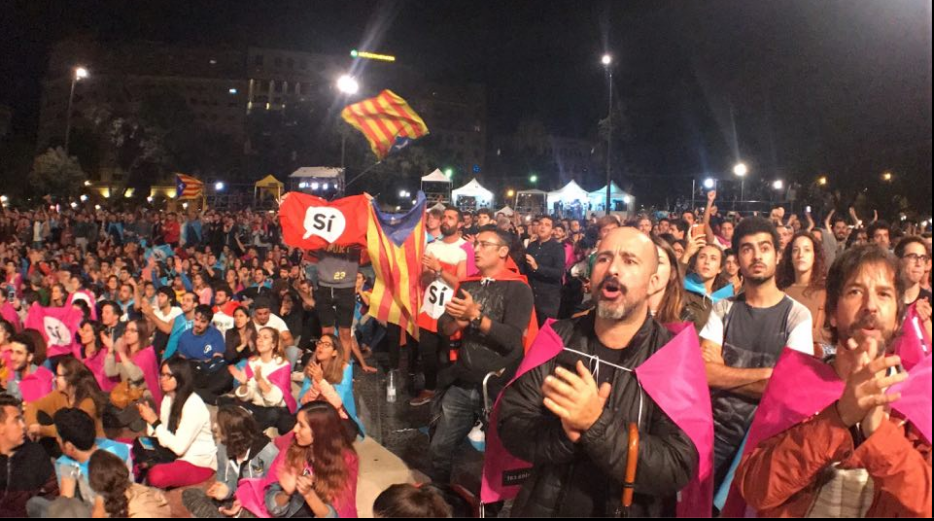 После закрытия участков для голосования на площади Каталонии в Барселоне собрались тысячи людей, которые ждут результатов референдума за независимость. Об этом сообщает корреспондент "Страны".