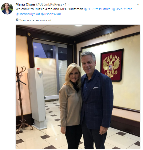 "Добро пожаловать в Россию, посол и госпожа Хантсман", - говорится в сообщении.