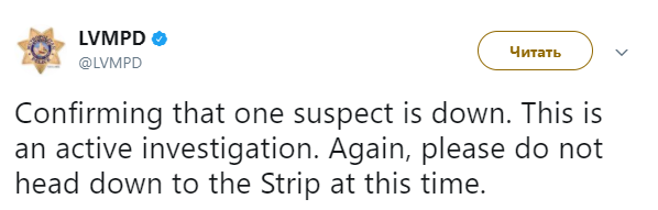 Правоохранители Лас-Вегаса застрелили мужчину, который устроил стрельбу во время кантри-фестиваля на Лас-Вегас-Стрип. Об этом сообщает пресс-служба полиции в Twitter.