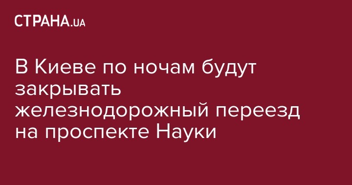 В Киеве на ночное время суток временно закроют движение транспорта через железнодорожный переезд на проспекте Науки из-за необходимости неотложного ремонта. Об этом в Facebook сообщает "Киевавтодор".