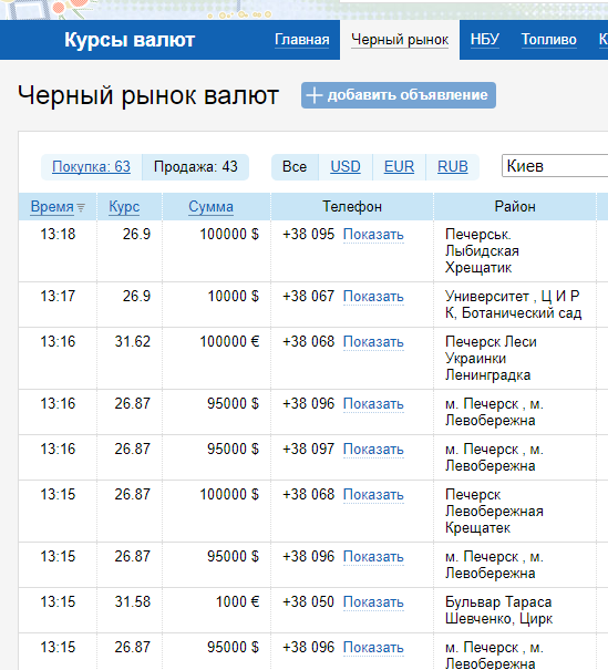 А на черном рынке, по данным finance.i.ua, курс в обед колеблется в пределах 26,87-26,9.